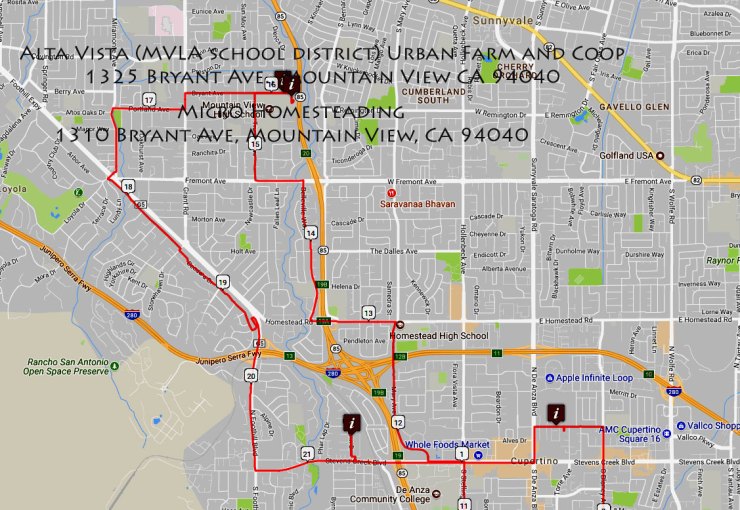 Our Mtn View / Cupertino tour is 21 miles with 5 coop stops.
