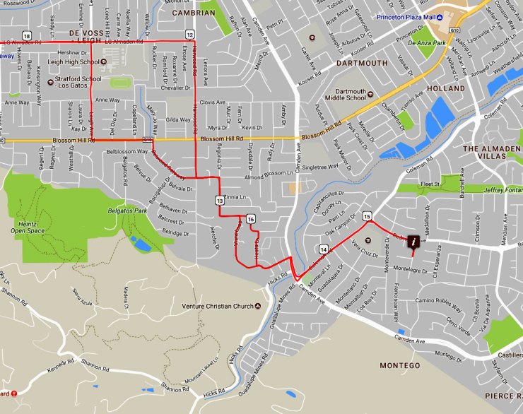 If you want to skip out on one coop, you can ride just ride about 11 miles, 5 coops avoiding the long out and back on Los Gatos Almaden Rd.