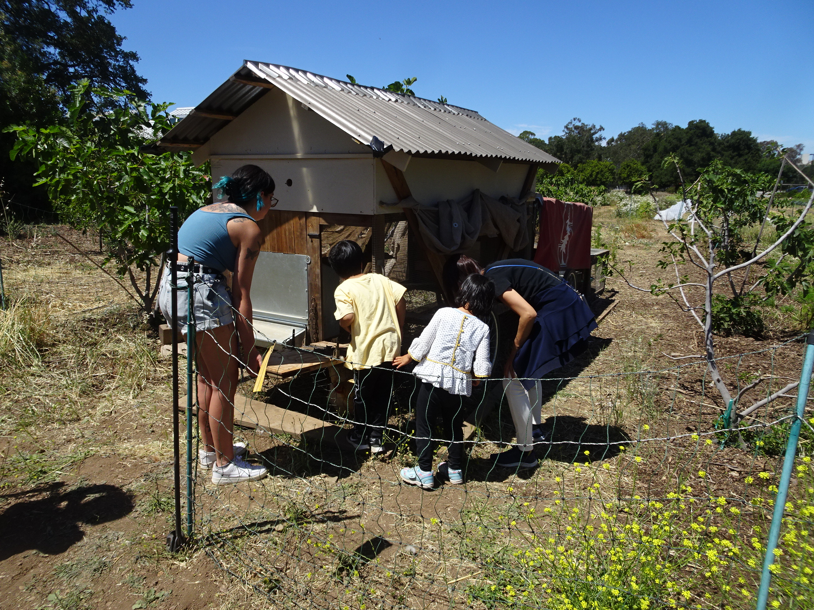 It was an epic adventure typical in its untypicalness and ever so befitting of a true Susannah Heather Platonic Girl Date (PGD). The best laid plans (pun intended) for a cooptacular bike ride were interrupted first by Heather’s back tire going flat at chicken coop #2 (in which we walked the bikes back 1.5 miles to our cars, and Heather drove 2.4 miles to Mikes Bikes for a fix while I made friends with crows at the Gunn parking lot), and than by Heather’s chain falling off (in which a gentleman going to a Gunn sporting event stopped and fixed it without skipping a beat), followed by Heather’s FRONT tire making a rather dramatic transition from full to flat not 1/2 a mile from coop #2 thus ending the biking portion of the day for Heather. But, because we would not be thwarted by fate, I biked back to the cars, brought the jeep to Heather, found a way to fit both Heather and her bike inside, drove to our 3rd and final coop, did not run out of gas, drove back to Heather’s car and proceeded to our ultimate unplanned reward of exquisite Brussels sprouts, corn fritters with honey, and an adult beverage at Dinah’s Poolside Restaurant. Today was about the kindness of strangers, perseverance, problem solving, and embracing the joy of unexpected detours that lead to some marvelous discoveries; namely the Barron park donkeys which neither Heather or I somehow knew existed. On our third Silicon Valley Tour de Coop, Heather and I got our fill of chickens, relished getting repeatedly acquainted with a particular section of new to us bike trail, and delighted in our special brand of mile a minute banter.