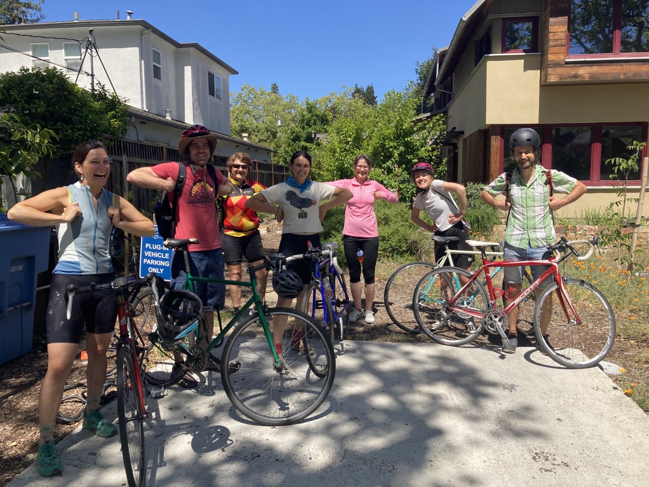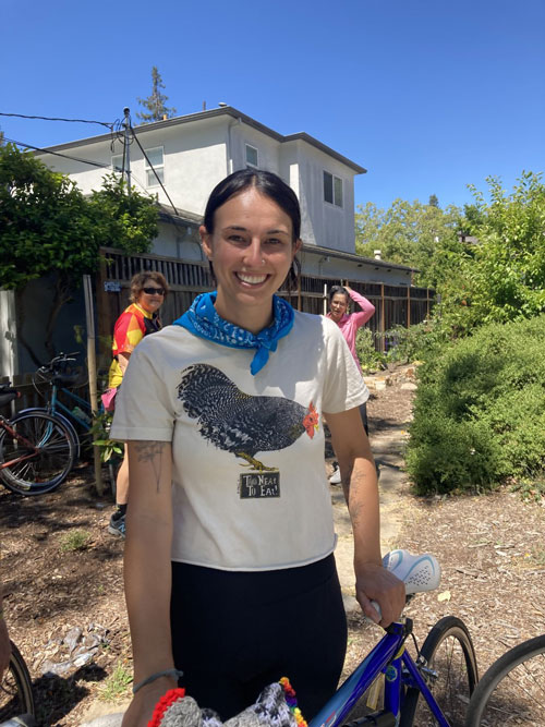 What a fantastic turnout yesterday. Final count at our place was 104 people. We had snacks and coffee and went through 3 full loaves of Olive Cheese Bread fresh out of the oven. Music and chicken chatting. Tons of bikes filled the driveway at times. We had 10 people still in our backyard at 4:00. Totally fine. It was great. Every single person was so polite and kind.