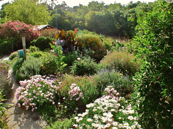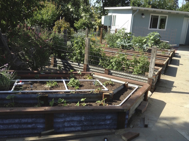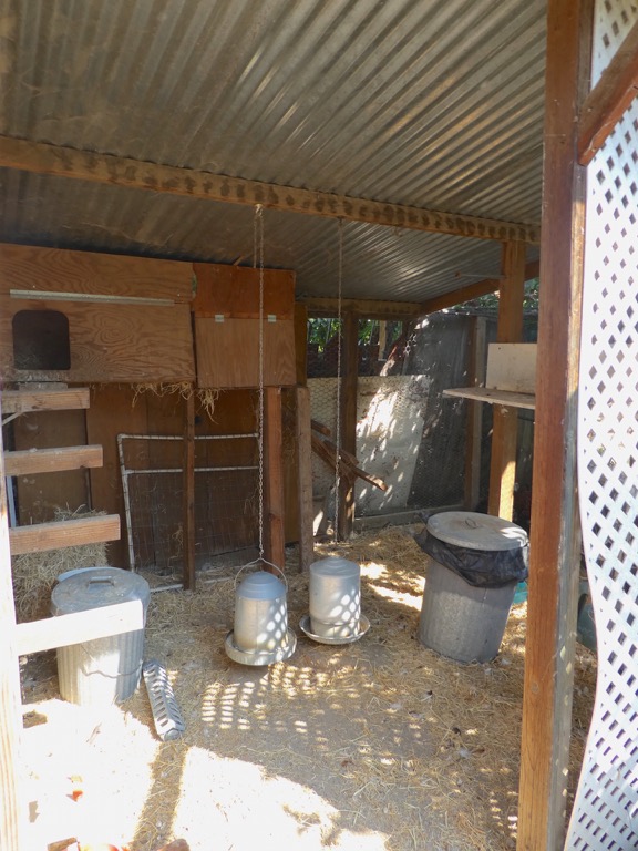 I don’t know if my coop is particularly unique. It is certainly not fancy and was built with a lot of recycled wood and chicken wire fencing. We have a large 2 sided room with corrugated metal roof so chickens have a lot of shade. The texting boxes are here as is the food and water. Then we have a fairly large outdoor space so that they can get plenty of sun as well. We also have a huge garden and I have enclosed photos below. We have no lawn.
