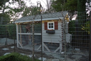 Our coop is designed to match our home. It has the same materials and colors. Our chicks have what I have always wanted, a screened in porch (better known as the run). It constructed on a cement slab and bolted to the foundation. The door handles and hen house latches were hand carved. It is topped off with a copper Hen & Chicks weathervane.