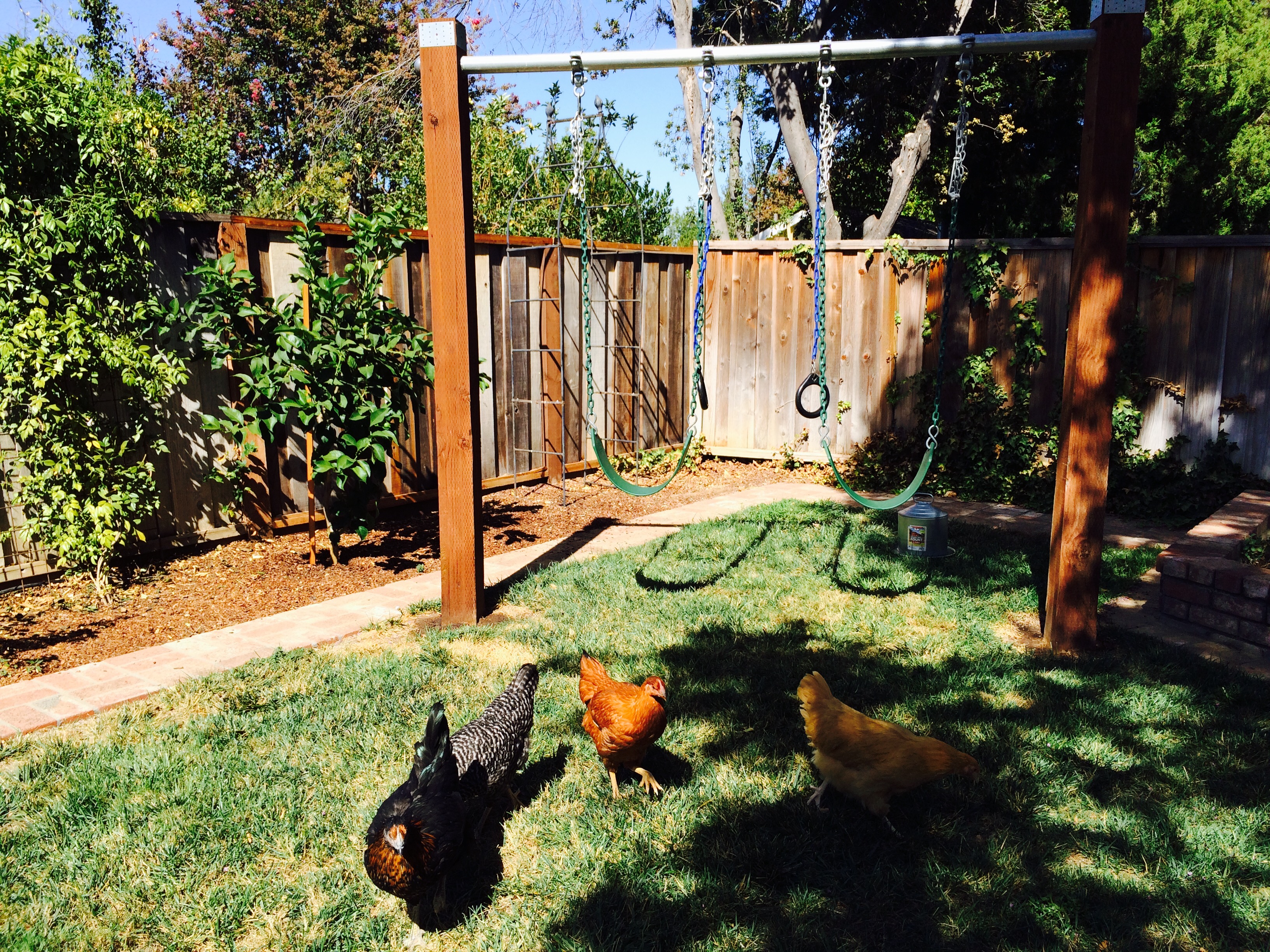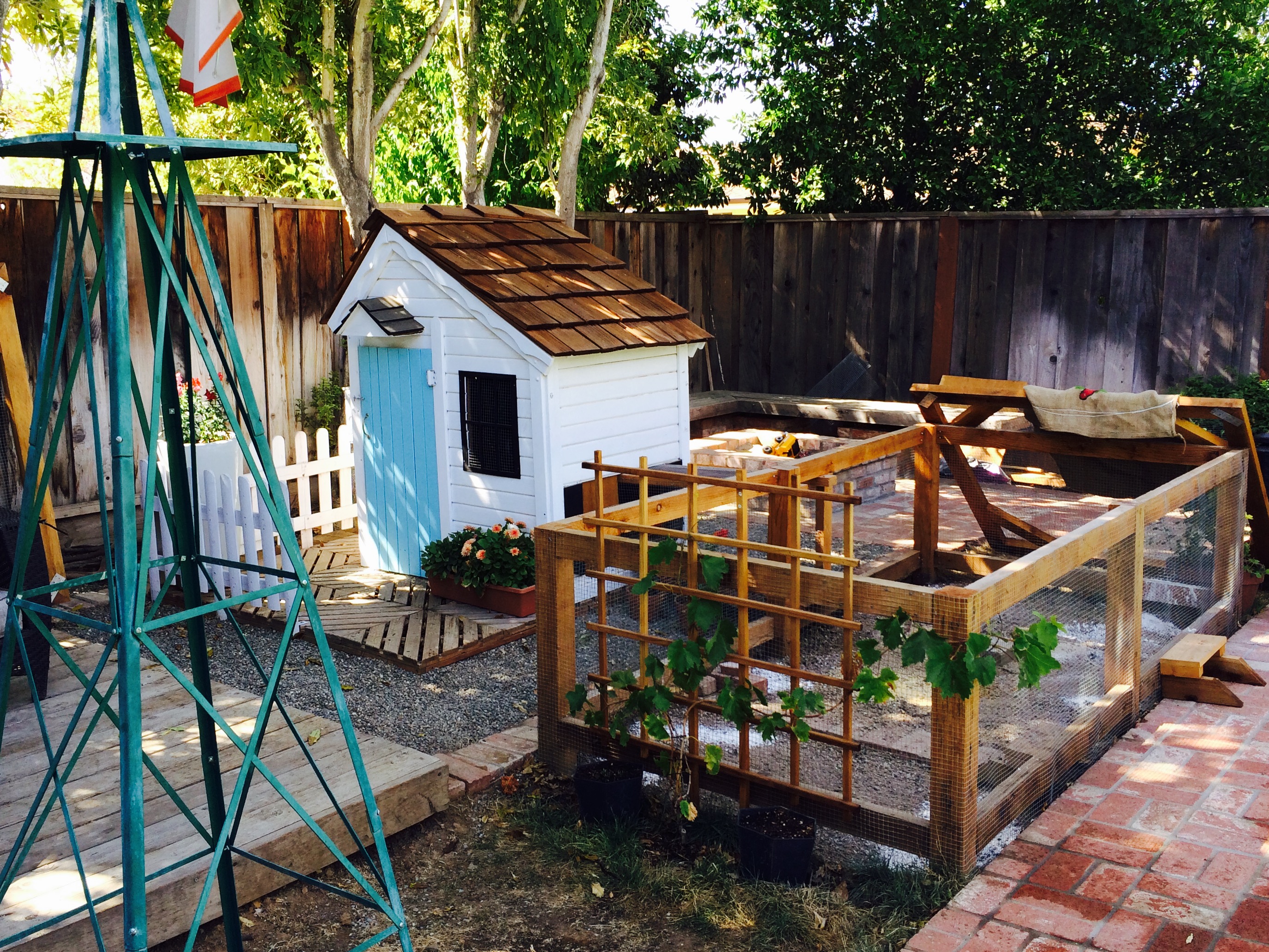Description: The Cape Cod Coop – Home to 4 chickens who share the yard with three rambunctious kids, a Whippet, and the occasional coon or skunk. This is your typical family yard where chickens and family co-exist – citrus trees, fruit trees, swimming pool, swing set, and drinking fountain. We also have a raised garden in our front yard to take advantage of the southern sun – currently have tomatoes and okra with pumpkins just coming up.