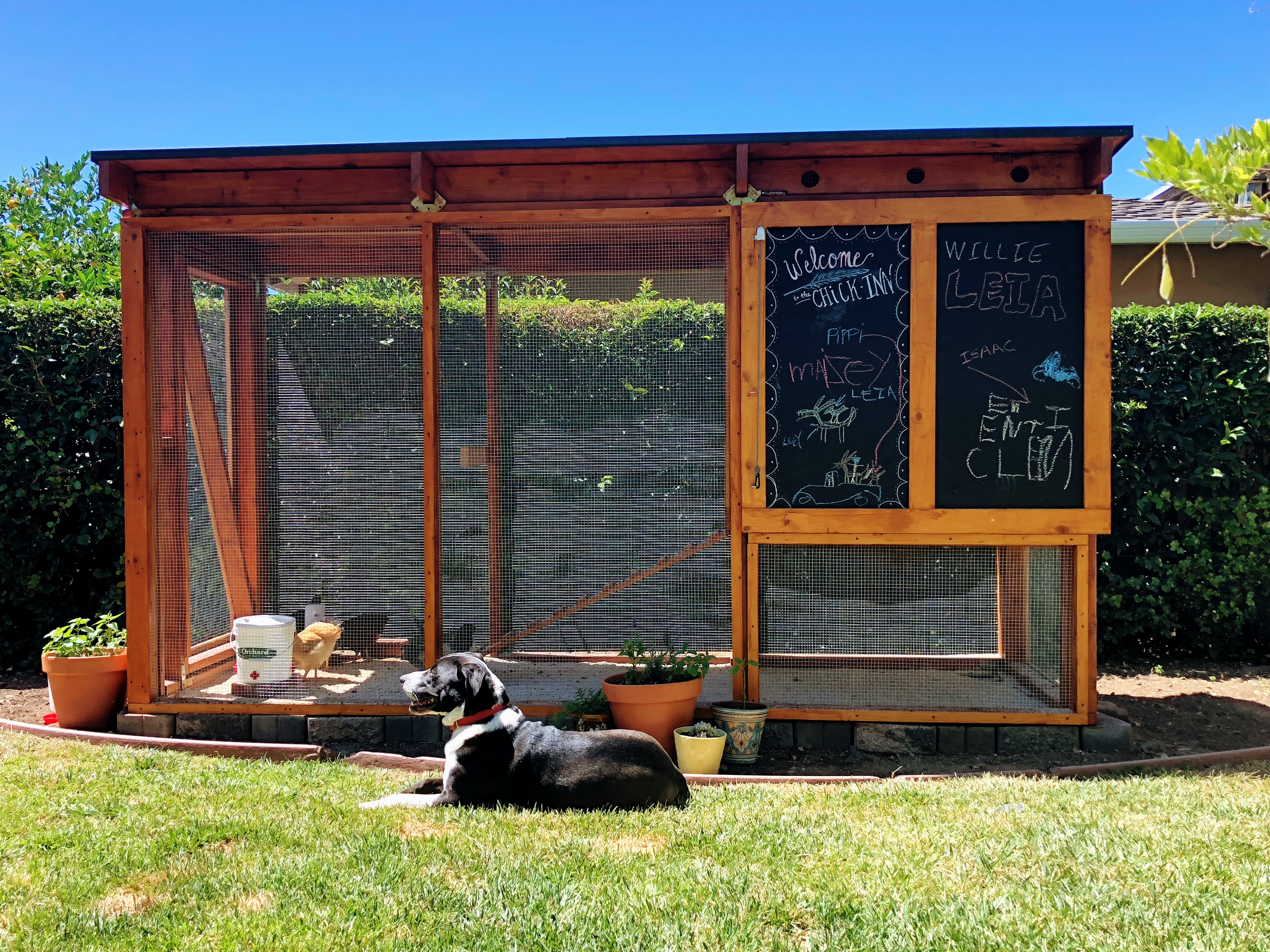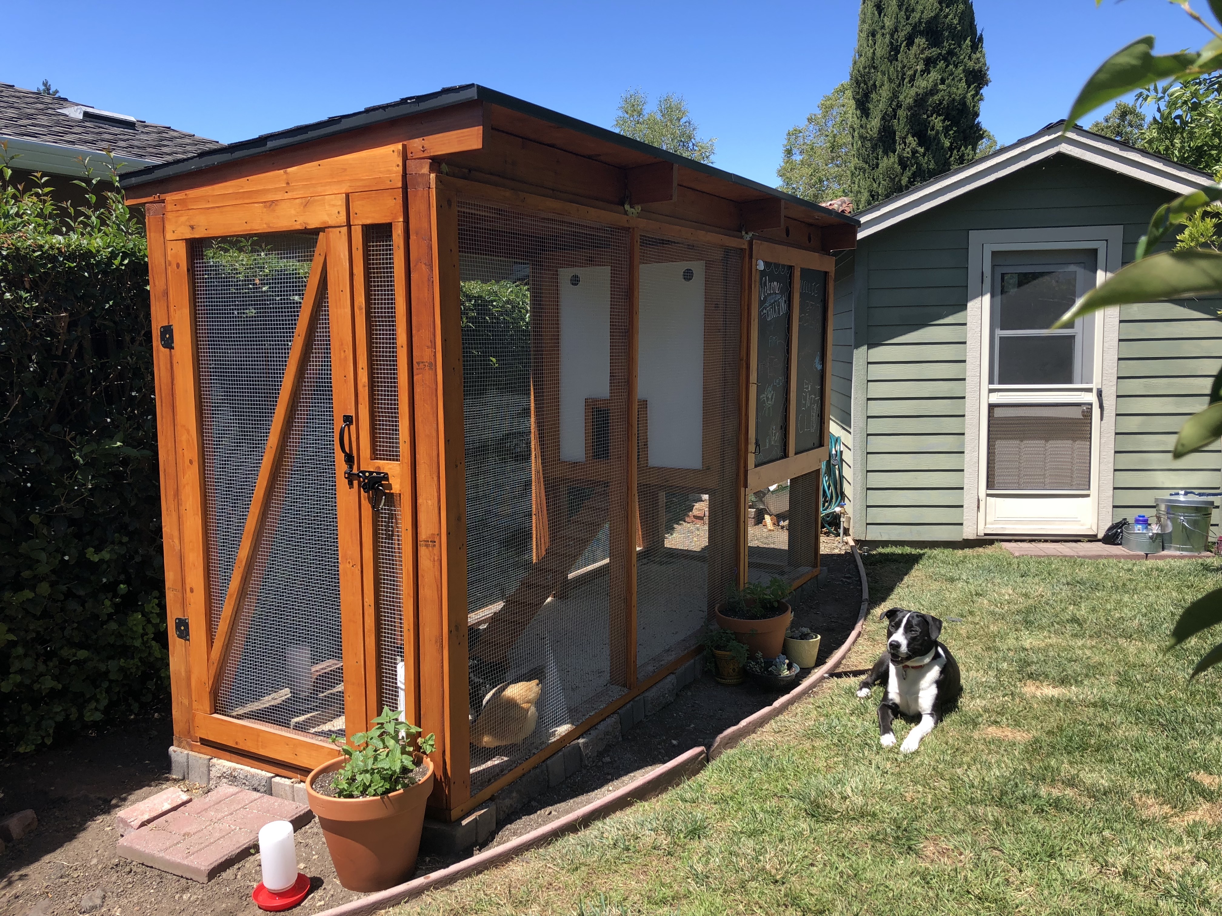 Small four-chicken coop I built this April to replace the nice one we left behind when we moved to California three years ago. I had just finished a Coop Mahal at our old house back east when I got a job offer here. We were finally able to buy a house here and building a coop is one of the first things we did.