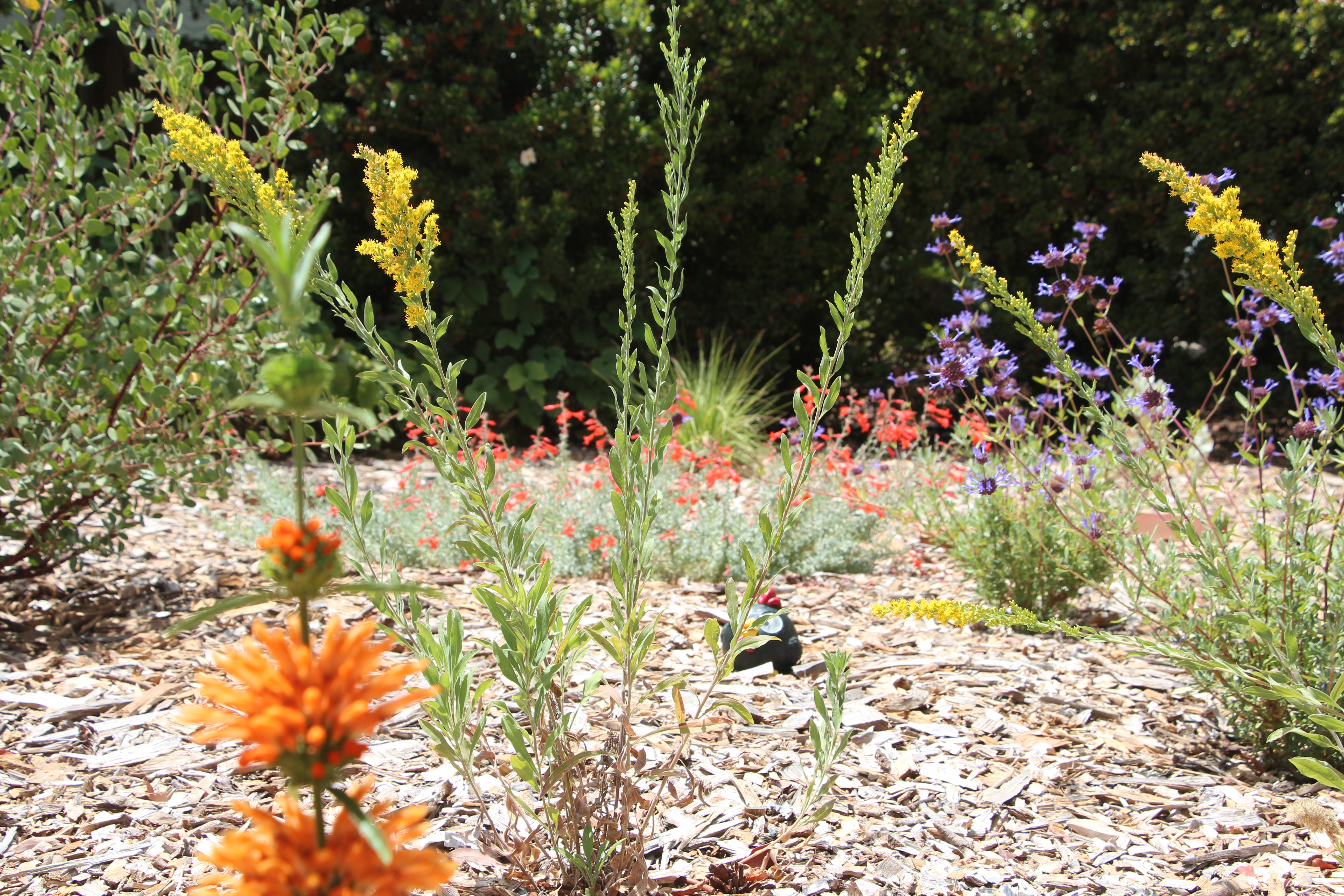 With the drought, we removed most of the lawn and heavily mulched the soil. The frontyard is a native/mediterranean garden since 2013.