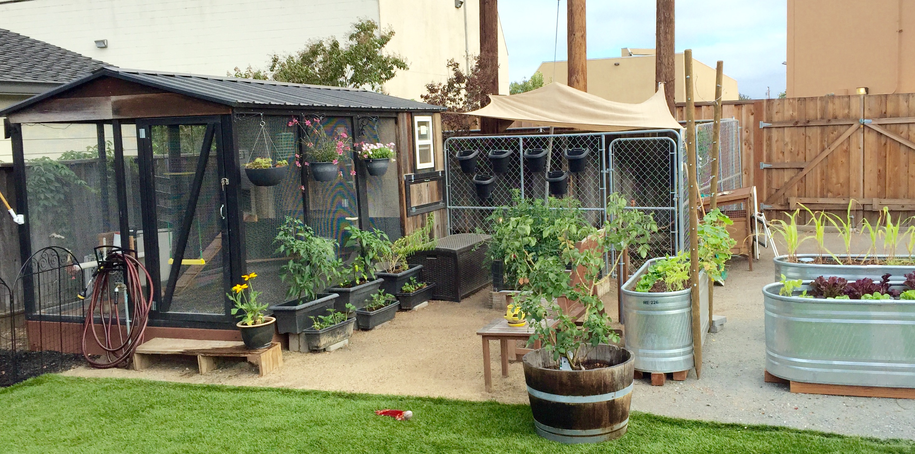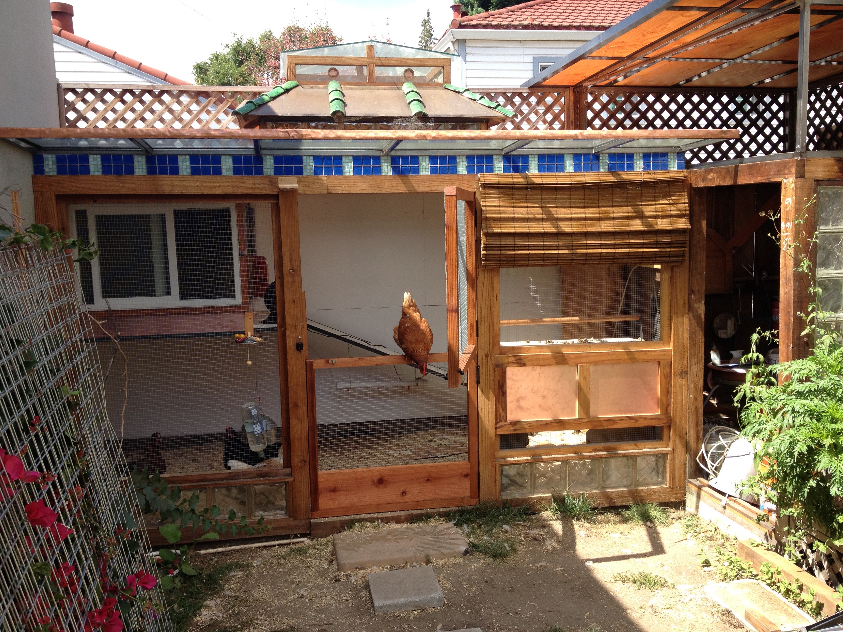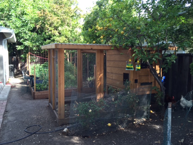 - Palo Alto Backyard Farm – coop, beehives, rain catchment, pitcher irrigation, fruit trees and vegetable garden. We have 3 Rhode Island Reds and 3 Delawares. Coop is a Wichita Coop Design – self contained Coop + run area.