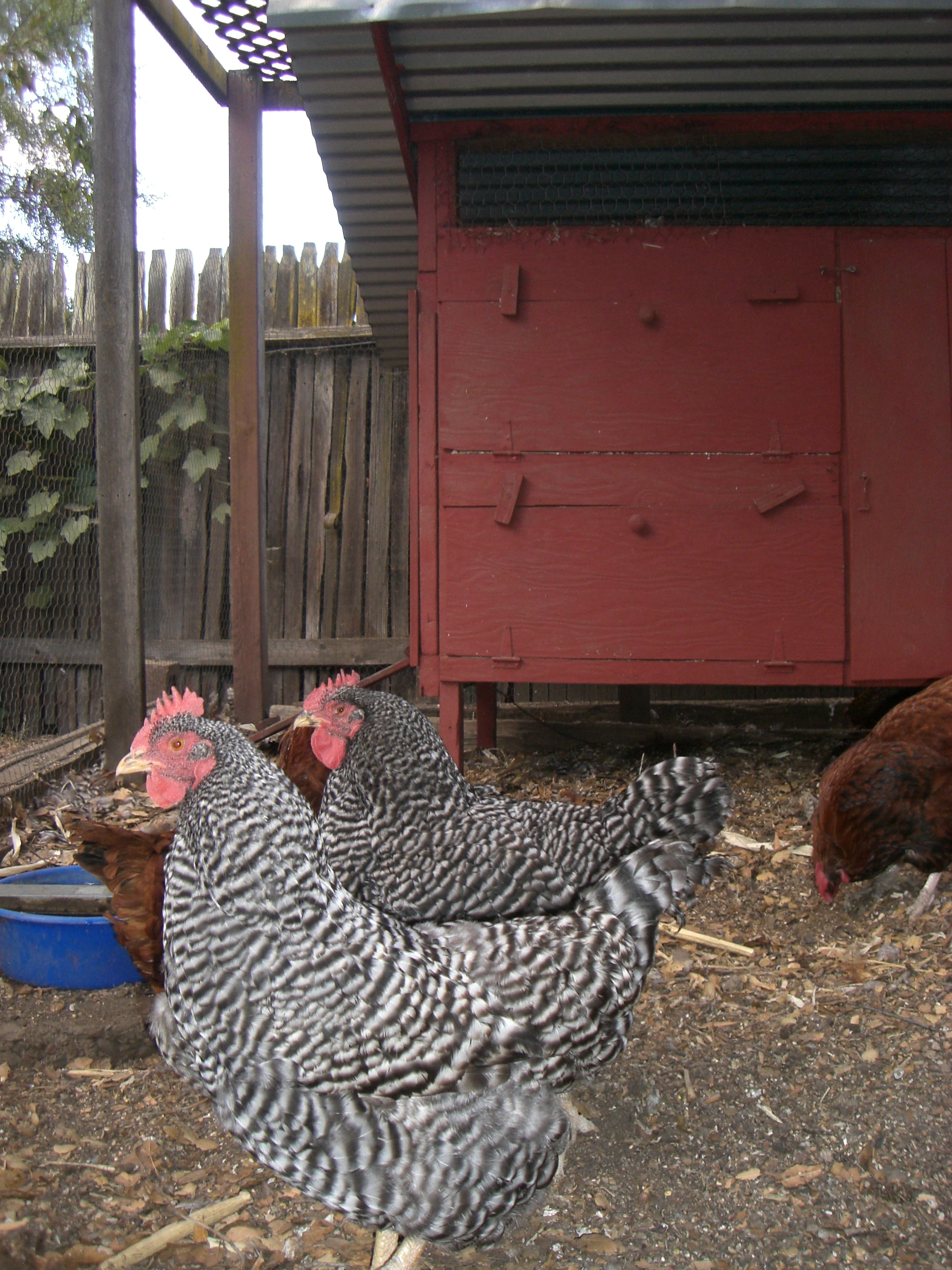- Little Red Hen House – Our current six hens are the latest generation of chickens that have inhabited the back corner of our edible garden for the last 50 years or so. The ladies live happily in a house and coop that I hammered together out of salvaged lumber about 20 years ago.