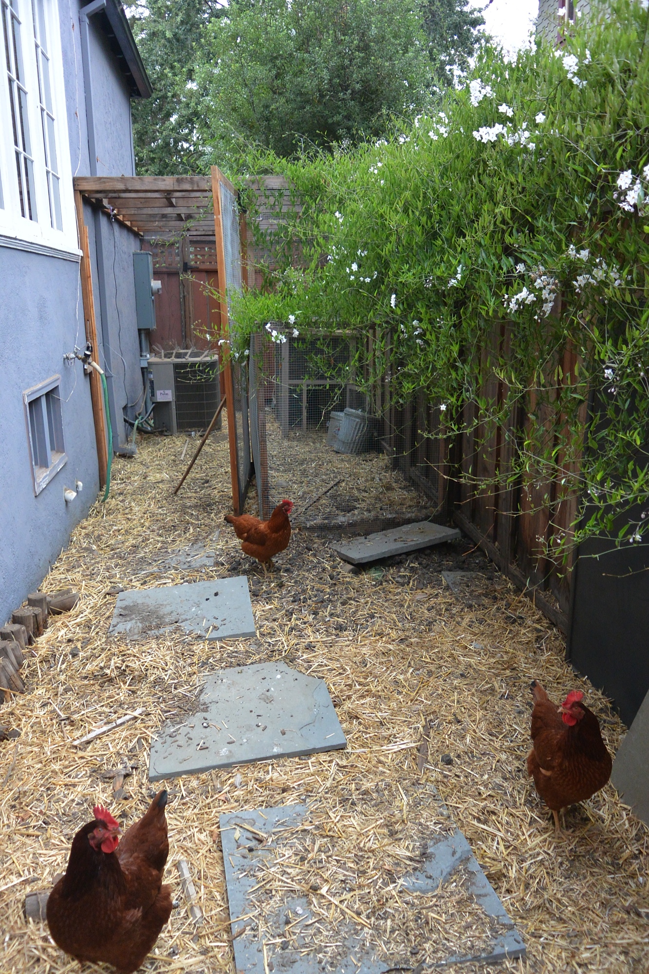 - Suburban Coop – We have three lovely ladies, Cluck, Roast, and Freedom that call Menlo Park home, along with Stella (Dalmatian mix pound dog.) Come visit a suburban coop that manages to carve out 10 x 30 feet of chicken run inside a “postage stamp” lot of 50×100!
