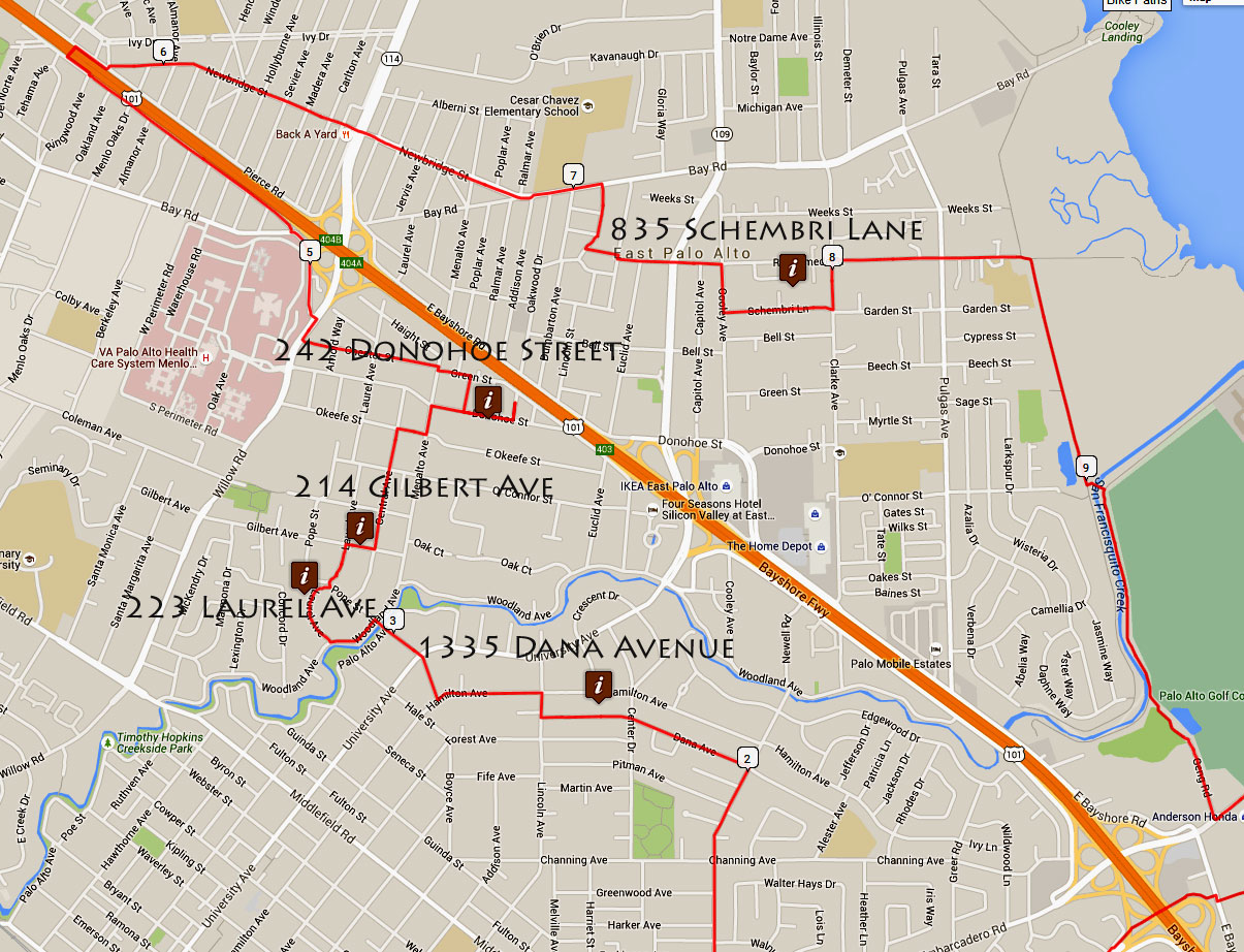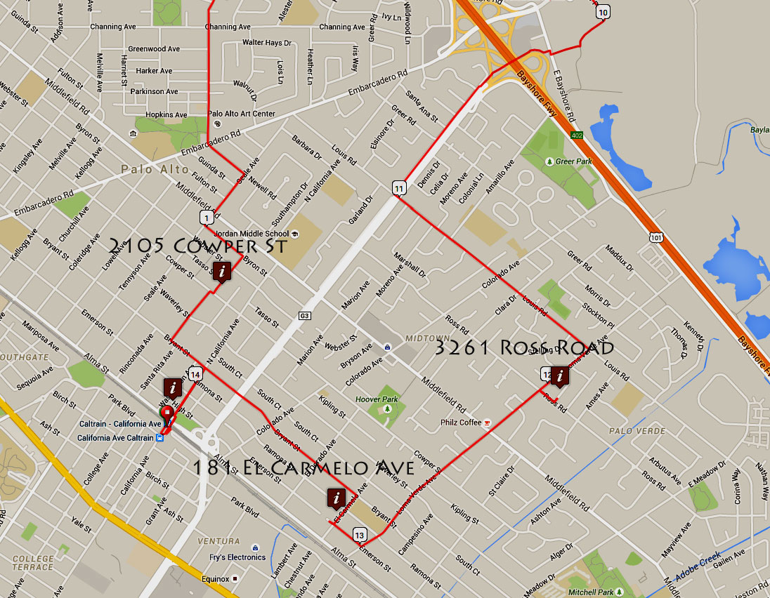 This 12 mile coop loop has 8 coops that include some backyard coops and community gardens. It also include 2 coops in Menlo Park.