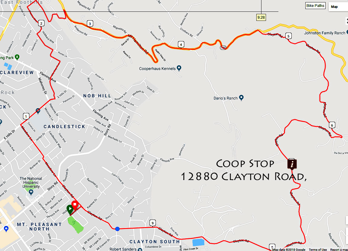 This coop loop is a fairly serious bike ride with 1000 feet of climbing in about 10 miles. This coop is in San Jose but not close to other coops so we created this cycling route and picnic!