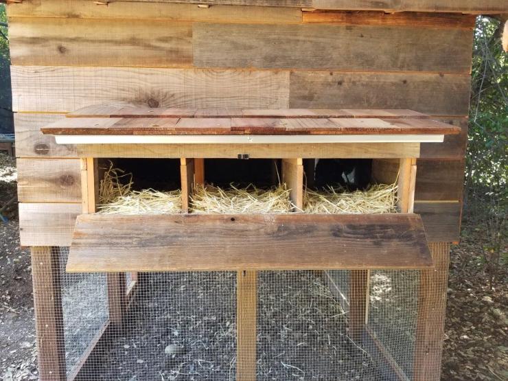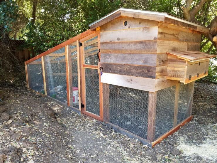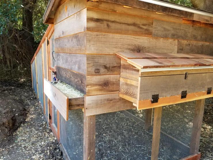 Unique features of the coop might be the relatively easy construction, and pull-out, drawer-style floor sections for easy cleaning. Most of the materials were salvaged from an old redwood fence, but the coop looks really nice, if I say so myself!!