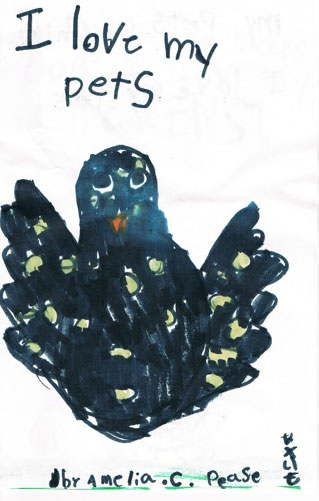 I love my pets Amelia – Age 4 San Jose, CA Colored marker on paper