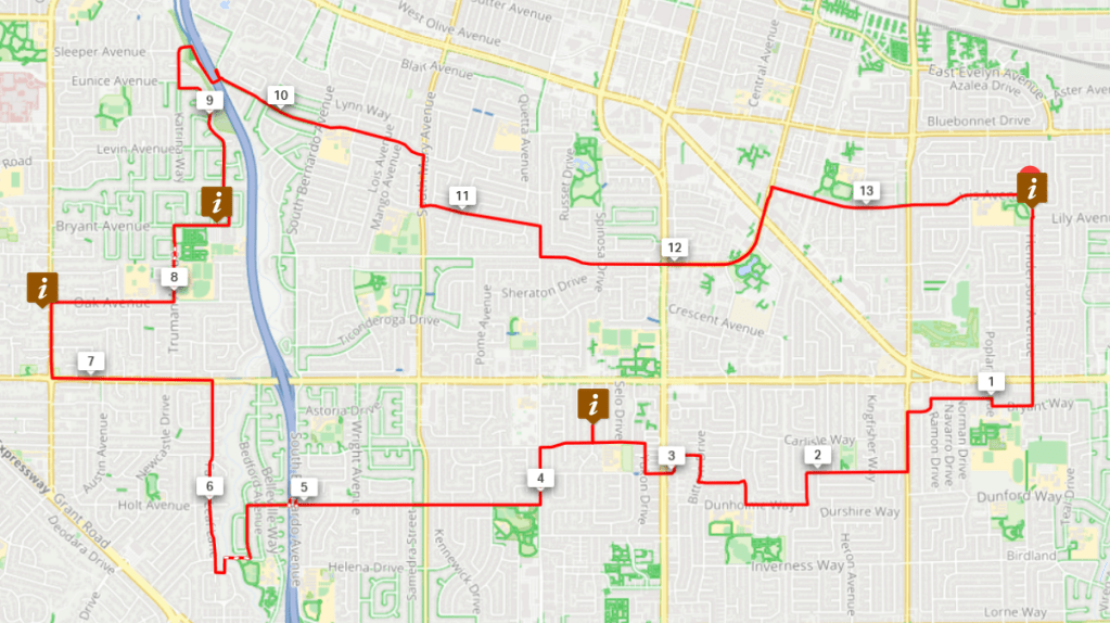 This loop is 13 miles and 3 coops. It starts at Ponderosa Park, in Sunnyvale at