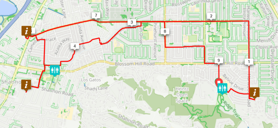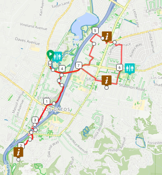 This route starts at Oak Meadow Park, Los Gatos