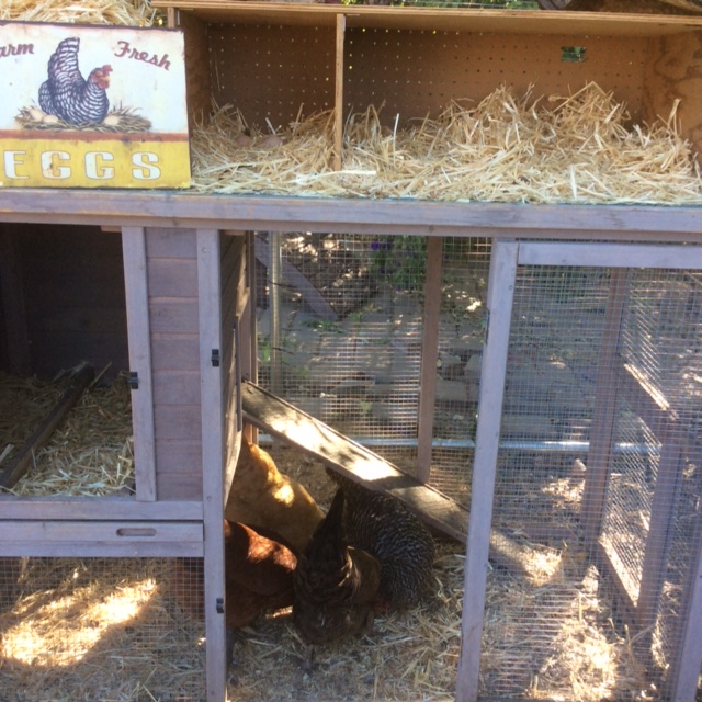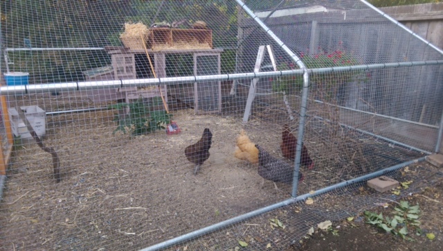 We have a large run with coop. We built the run from a kit bought through eBay. We also have removed lawn and replaced with drought resistant California native plants.