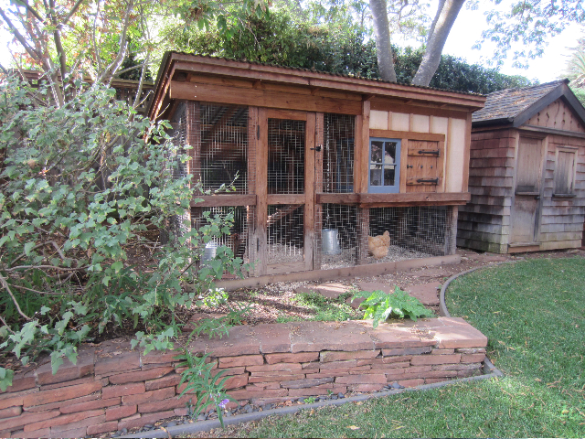 Rancho Adobe Coop Description: A redwood coop with corrugated sheet metal roofing and salvaged iron hardware. Uniqueness: The coop and it’s three resident hens share the yard with a bunny hutch and three resident bunnies! Offering: Cookies served while they last!