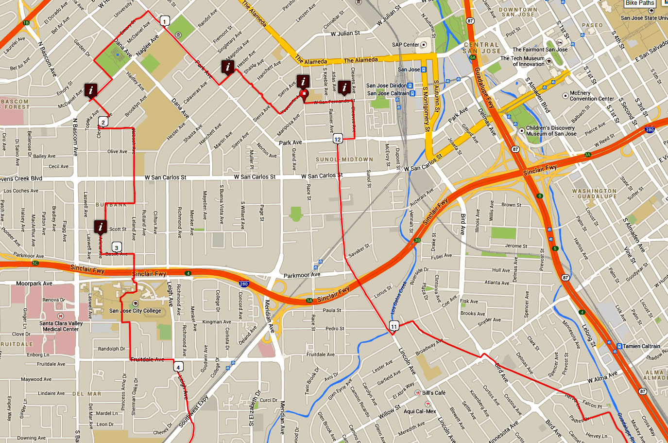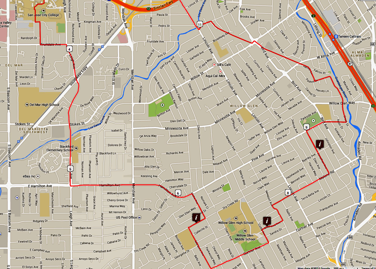 Map #1 – Shows starts at Middlebrook Gardens – Race Street, SJ