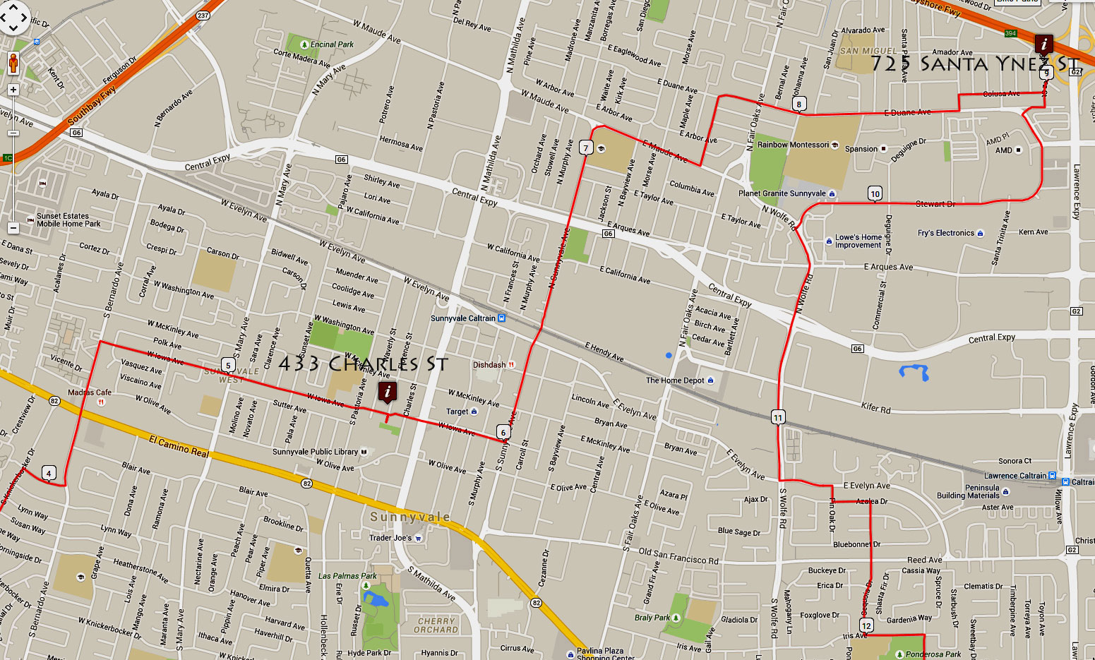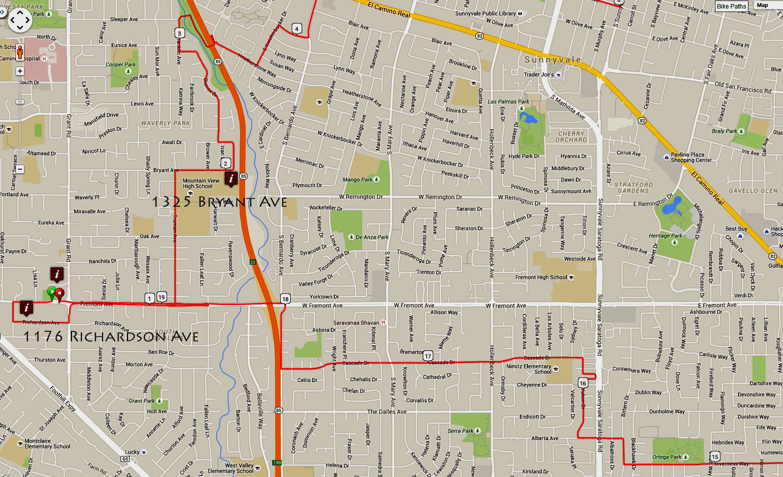 This ride starts and finishes at Marymeade Park, Los Altos, CA 94024 in Los Altos. There are restrooms and water at this location.