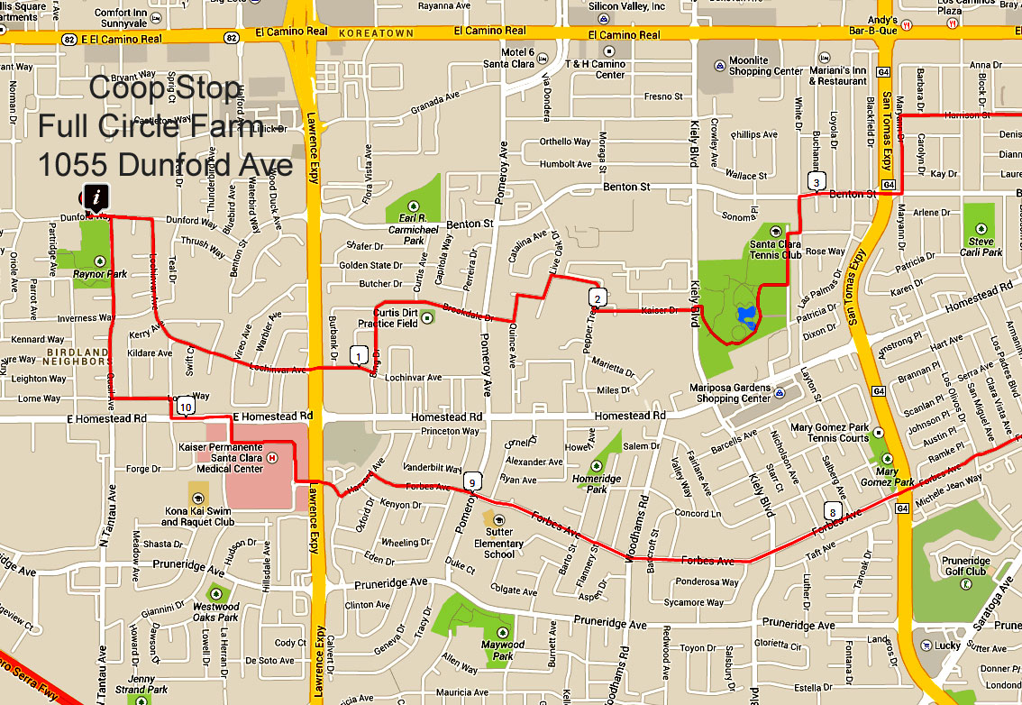 The tour starts at Full Circle Farm at 1055 Dunford Ave, Sunnyvale, CA