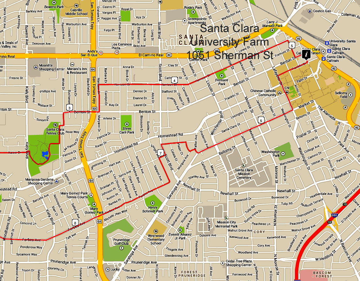 This 11 mile, flat ride goes between Sunnyvale Full Circle Farms and Santa Clara University Community farm. Each offers a wide variety of on-going, farming experiences for the community and we encourage anybody in this area to visit these farm to find out how you can be part of their community farm project. More information about each of these farms programs is located on their websites at: