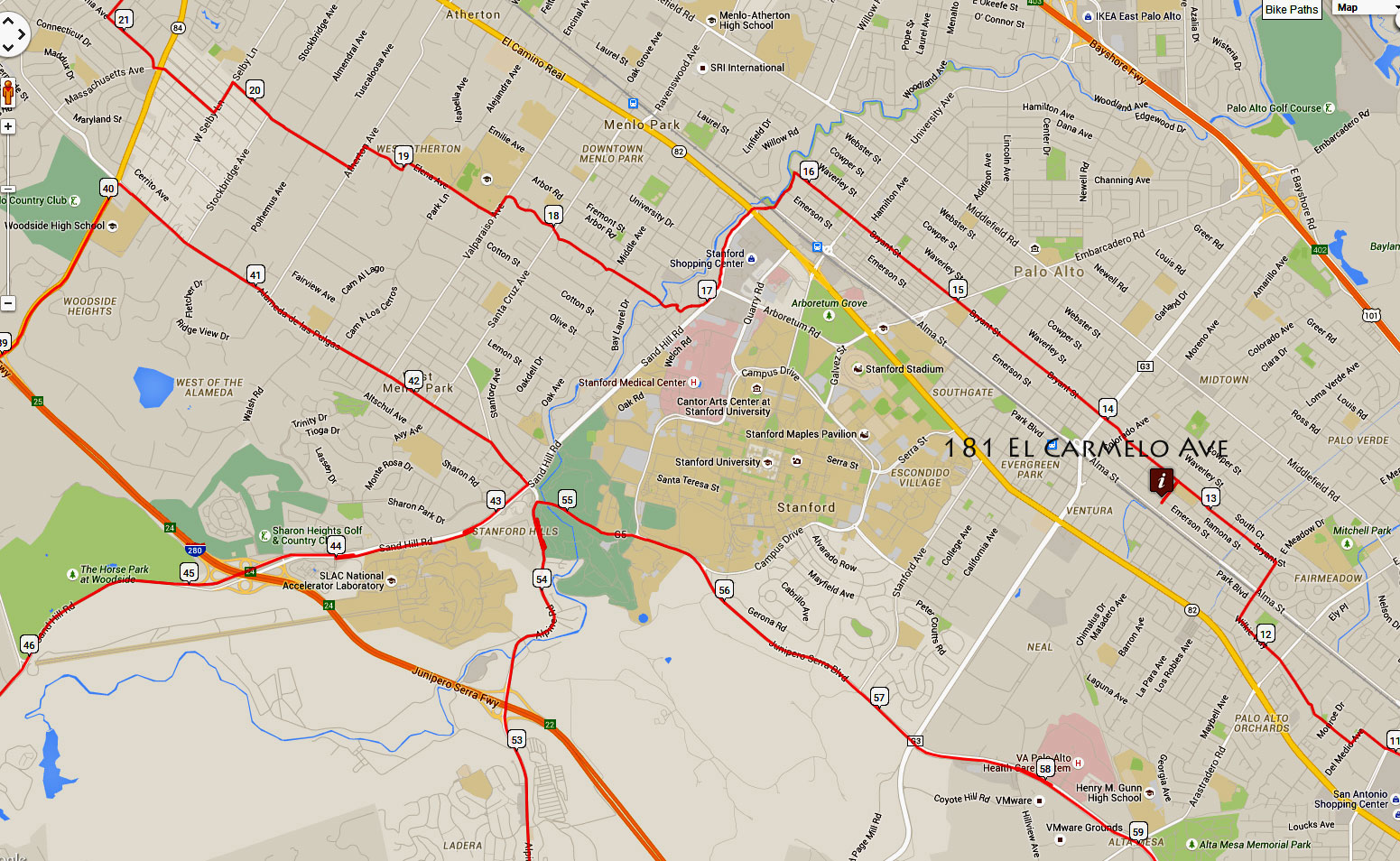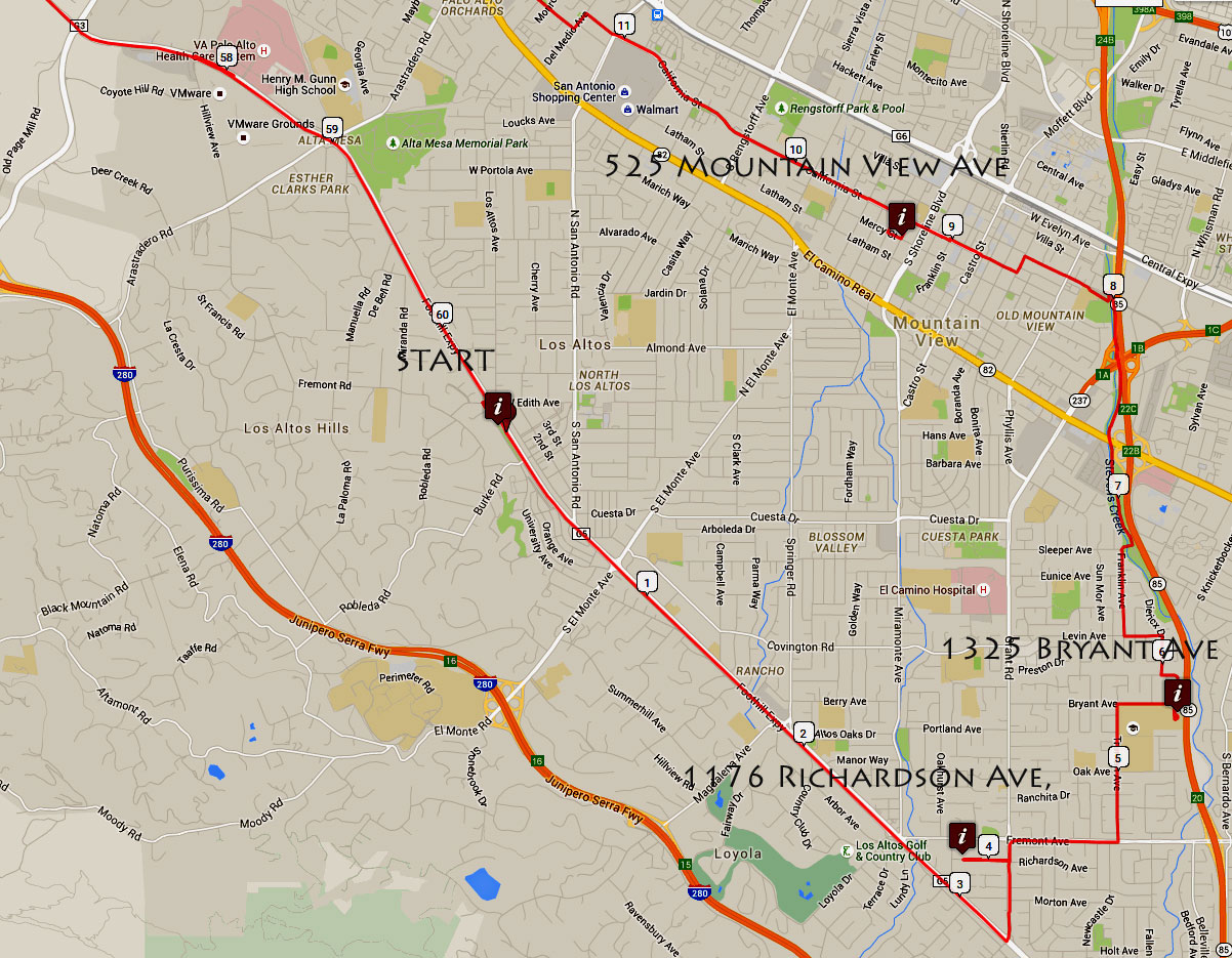 It starts in Los Altos at Lincoln Park and takes popular cycling routes including: