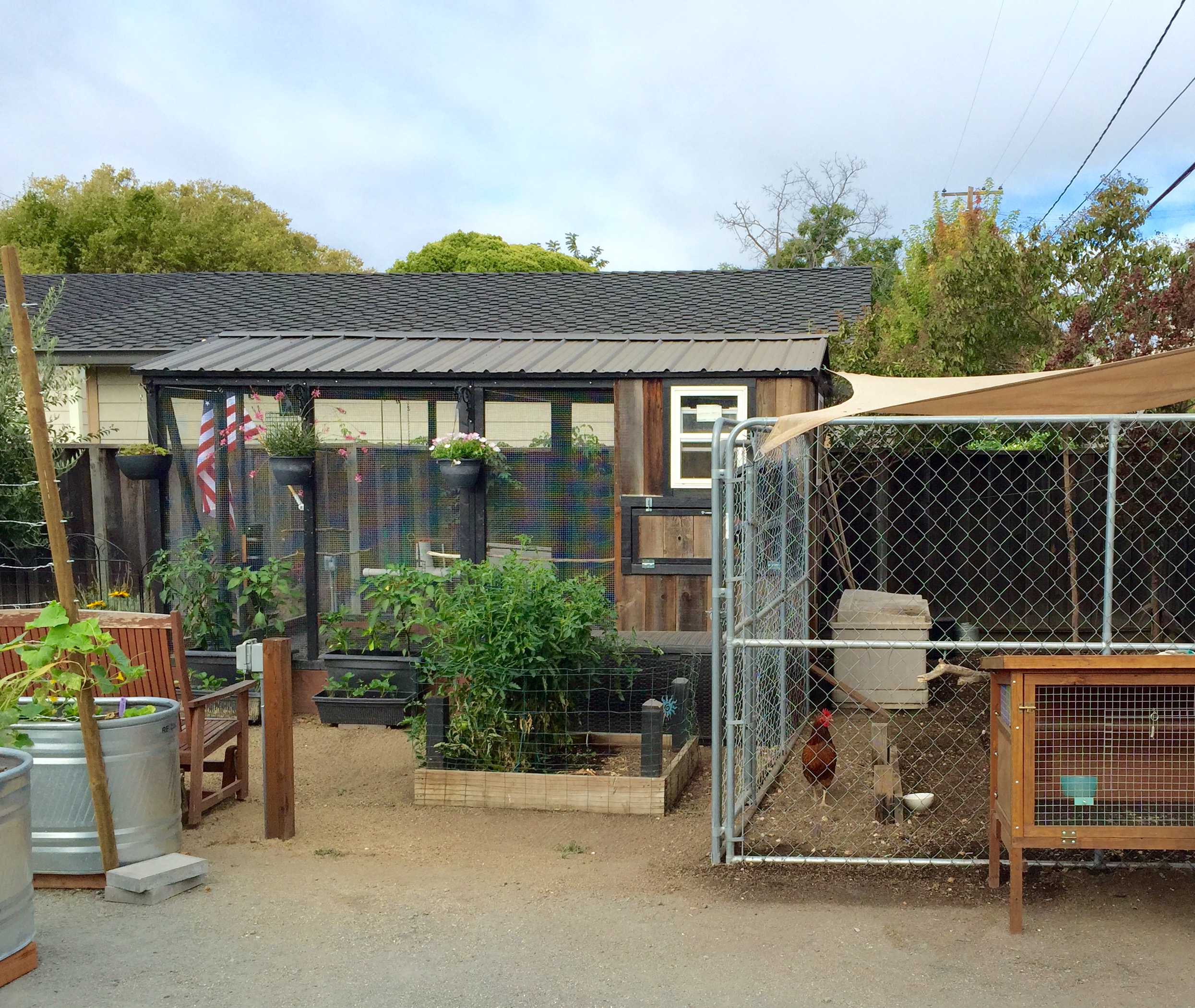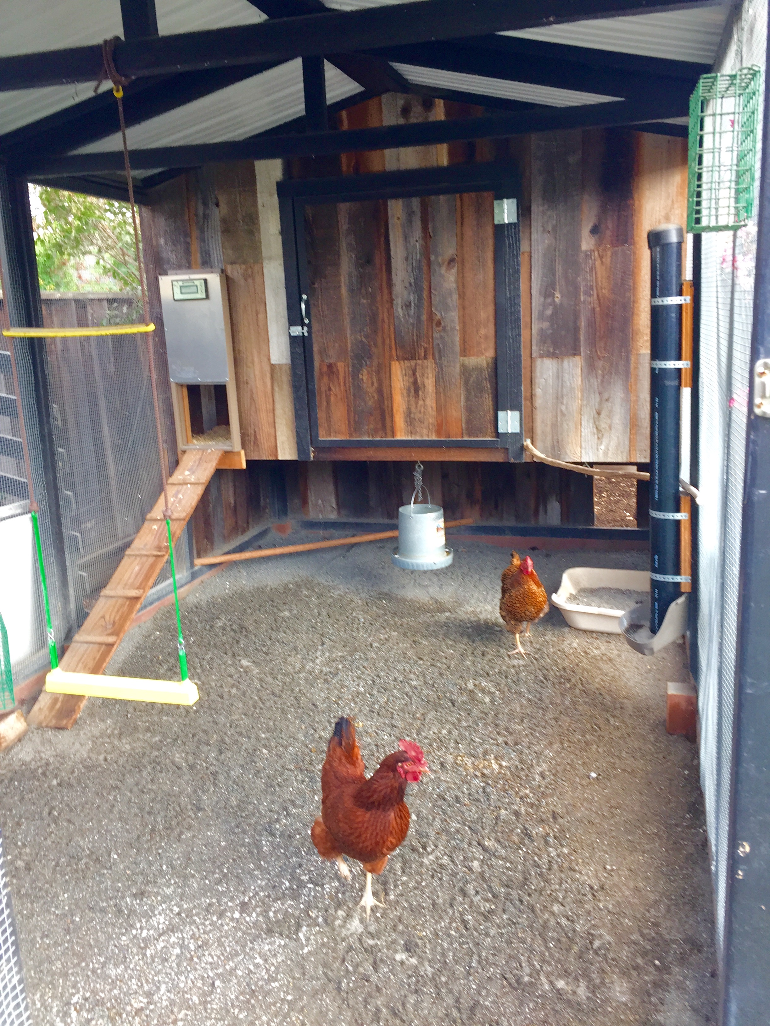 We have a large coop, run and small garden for our 8 spoiled female inmates. Red, Alex, Piper, Taststee, Tiffany, Suzanne, Daya and Mama. Our 2 dogs and cat are happy to share the yard.