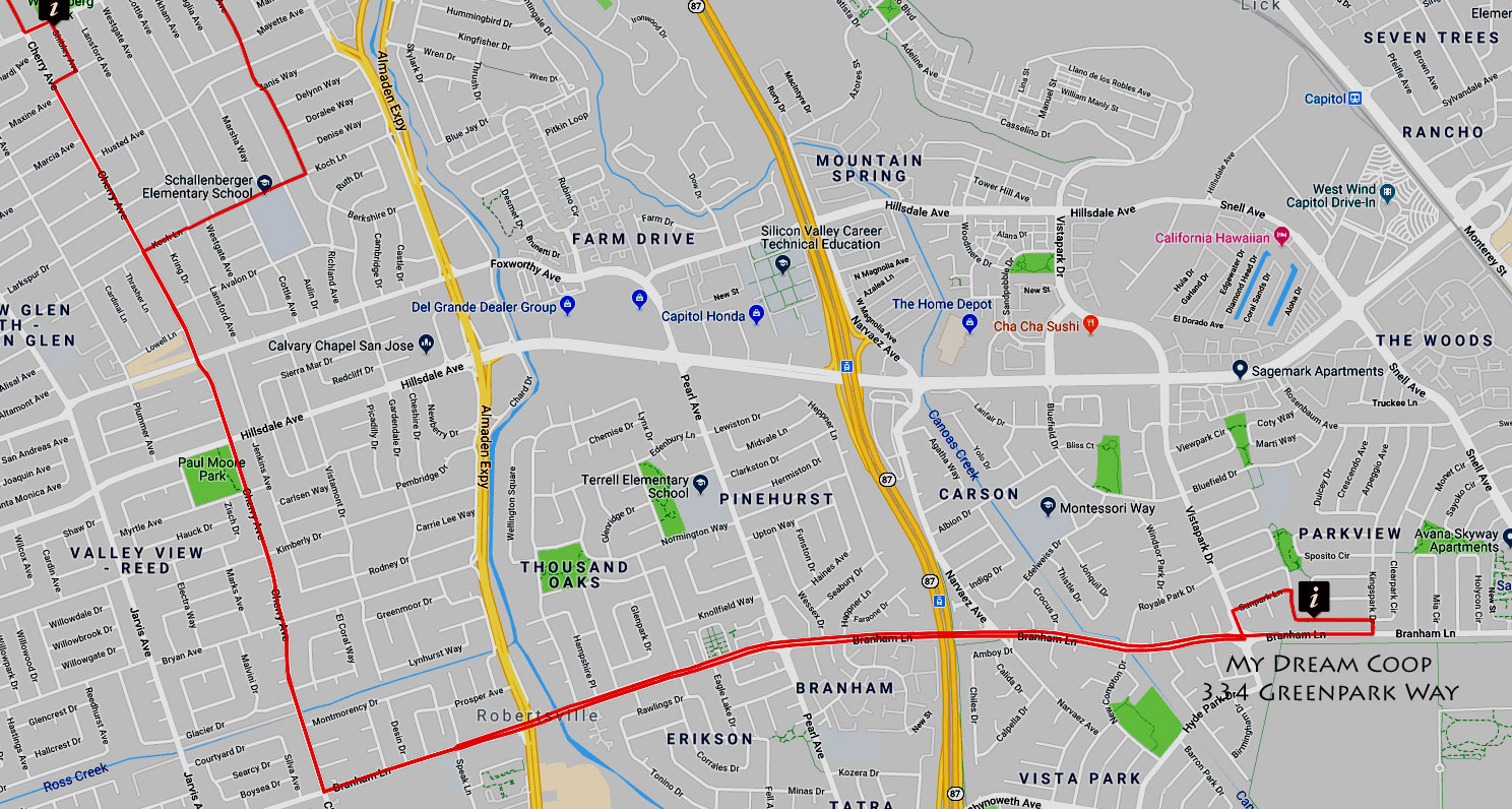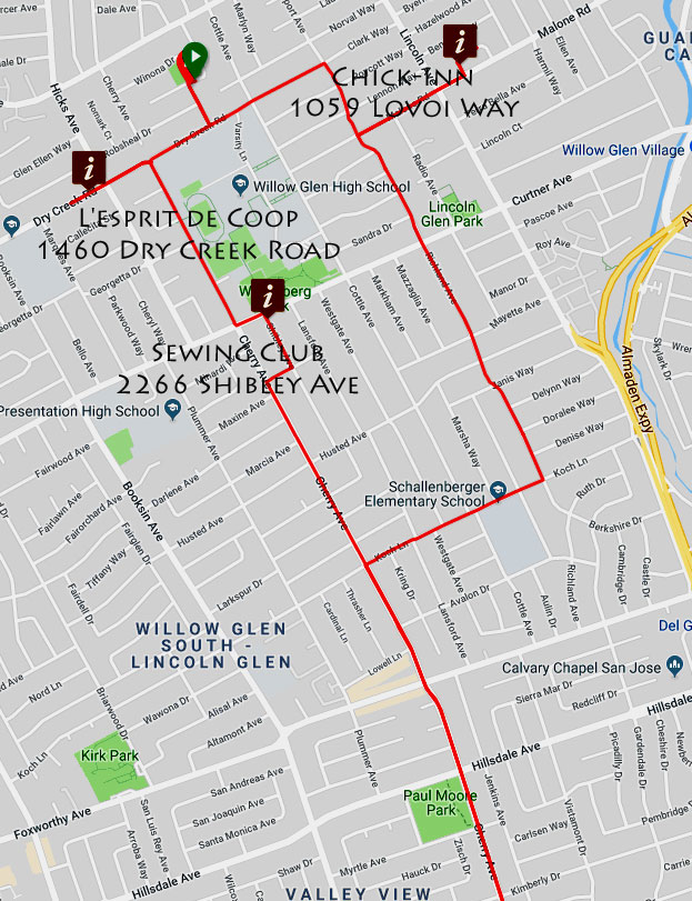 This tour starts at Wilcox Park in Willow Glen, San Jose neighborhood and visit 4 coops.